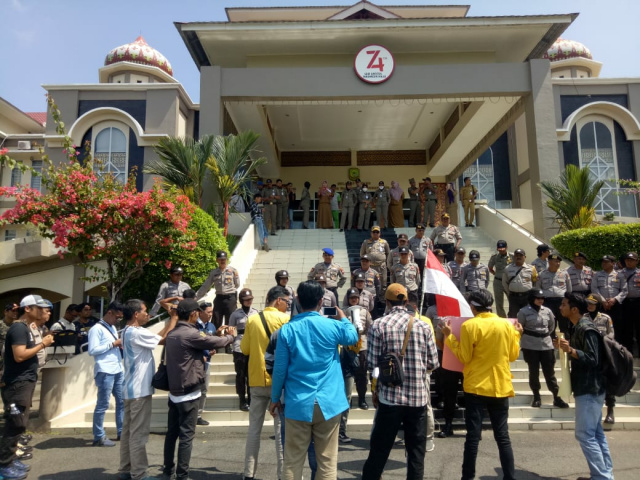 “Kurang lebih satu tahun Syahrul-Rahma banyak maslah, salah satunya terkait BUMD yang diduga mala administrasi,” ujar salah satu mahasiswa saat orasi.