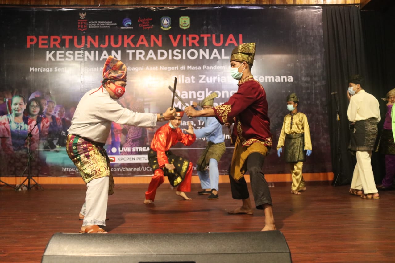 HAal inilah yang dilakukan Komite Penanganan Covid-19 dan Pemulihan Ekonomi Nasional (KPC PEN), Kementerian Kominfo Republik Indonesia (RI) bersama Dinas Kominfo Provinsi Kepri dan Pemko Tanjungpinang. Mereka mengadakan pertunjukan virtual kesenian tradisional melayu di Gedung Kesenian Aisyah Sulaiman Tanjungpinang, Kepulauan Riau, Selasa (17/11/2020) malam.