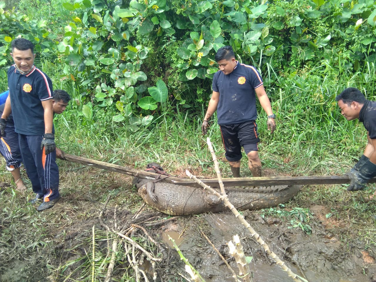 “Kini buaya tersebut diamankan warga dan petugas Satpol PP untuk di lepaskan ke habitat yang jauh dari warga,” terangnya.