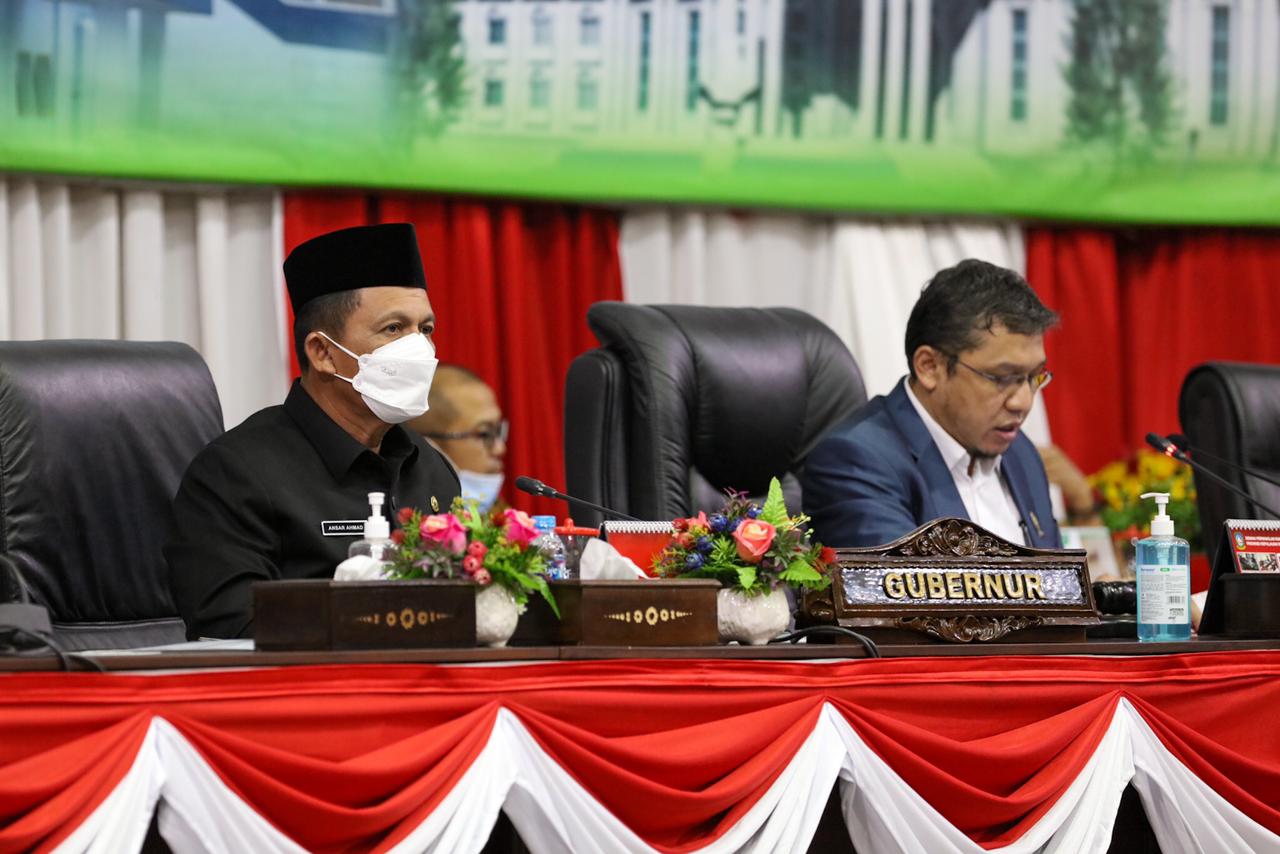 Gubernur menyampaikan bahwa realisasi APBD tahun 2020 yang menggambarkan kinerja pengelolaan keuangan daerah yakni Pendapatan dianggarkan sebesar Rp3,524 triliun lebih, dengan realisasi mencapai Rp3,514 triliun lebih, atau mencapai 99,72 perseb dari target yang ditetapkan.