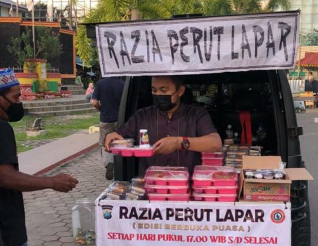 Razia di Ramadhan ini sama dengan waktu-waktu sebelumnya dengan moto “Siapa Saja Boleh Makan, Razia Perut Lapar Bayar Rp1000 atau Seikhlasnya” perut jadi kenyang.