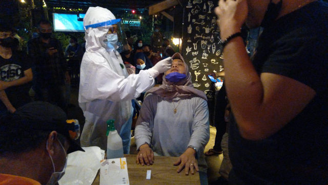 Tim gabungan yang melakukan pemantauan ke tempat makan maupun tempat hiburan malam di kawasan KM 9 yang masih buka setelah lewat pukul 22.00, dan melakukan test Rapid Antigen kepada pengunjung yang masih berada di tempat makan maupun di tempat-tempat yang dirazia.