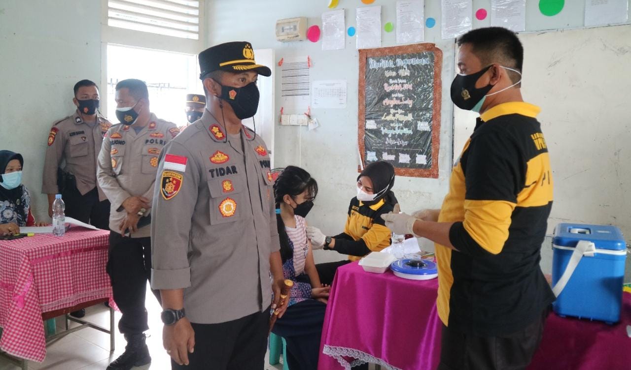 Bintan, KepriDays.co.id –Kapolres Bintan AKBP Tidar Wulung Dahono melakukan peninjauan vaksinasi covid-19 di SMP Negeri 12 Bintan, Kamis(16/9/21) siang.
