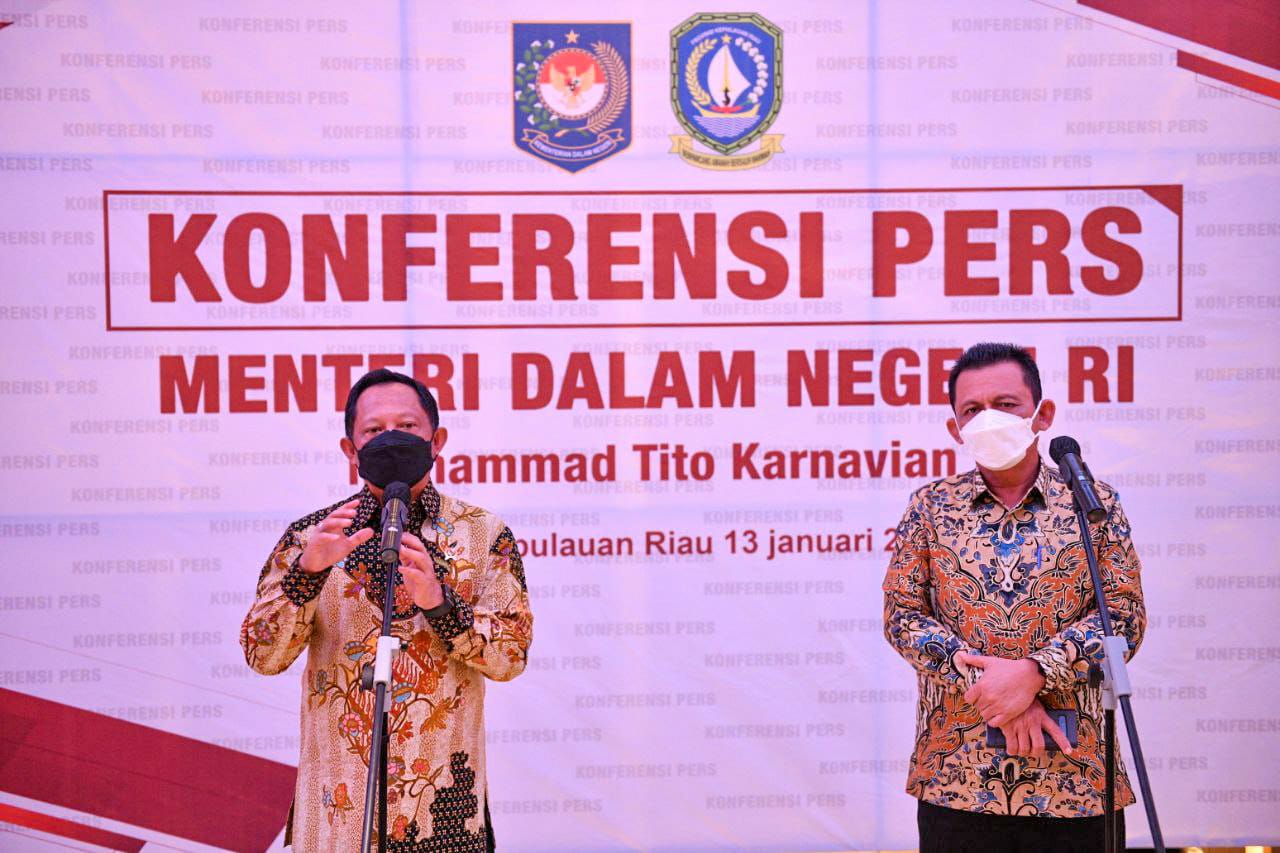 “Saya tentu mengucapkan banyak terimakasih,  dan berharap Kepri terus konsisten menjaga kondisi ini. Karena ini adalah kunci kita bisa mengembalikan pemulihan ekonomi, ” kata Mendagri Tito Karnavian dalam jumpa pers usai memimpin rapat Monitoring dan Evaluasi Program Strategis di Provinsi Kepri bersama Gubernur, Bupati serta Walikota Se Kepri di Mariott Hotel Kota Batam, Kamis (13/1/2022) malam.