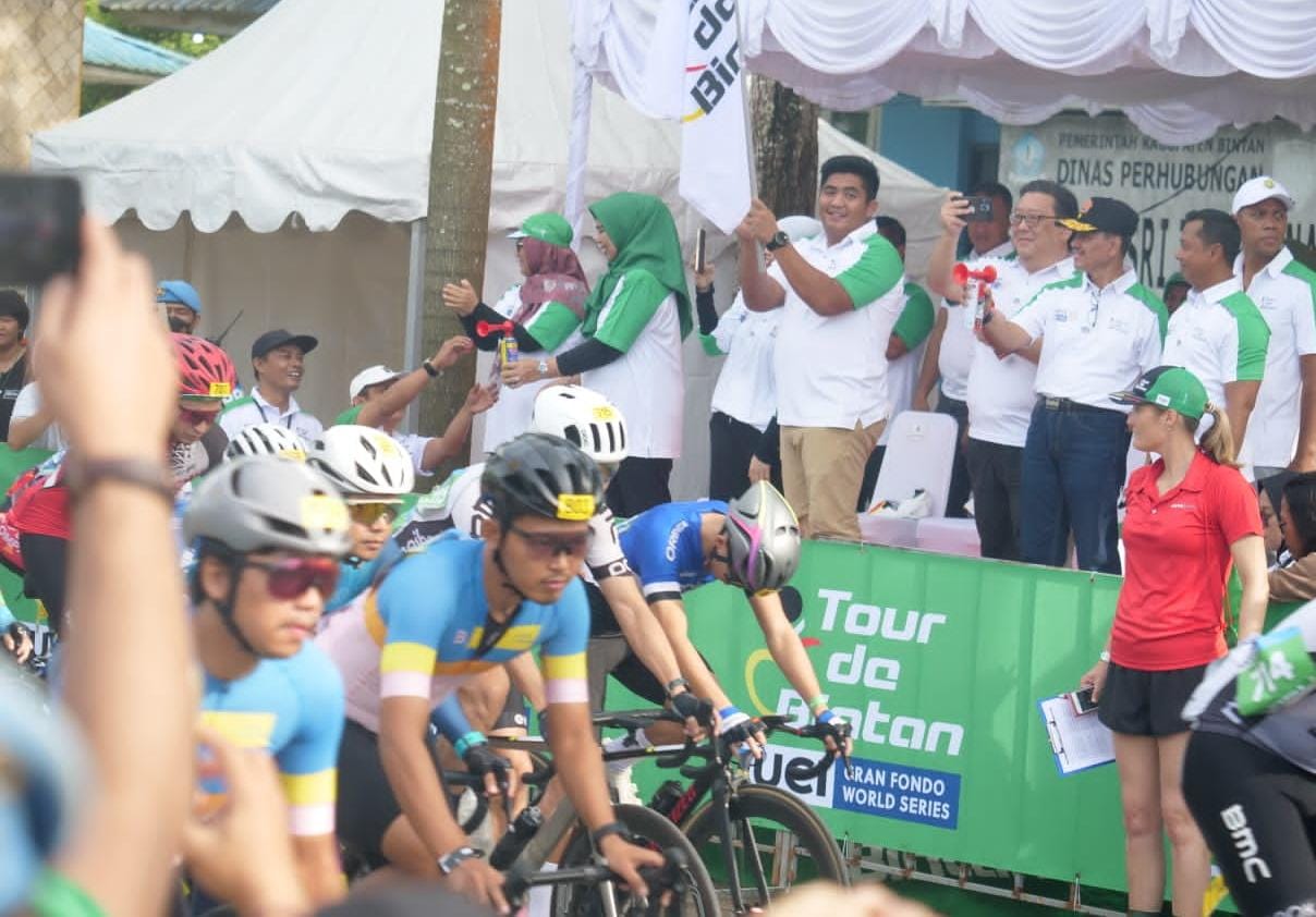 Bintan, KepriDays.co.id -Bupati Bintan Roby Kurniawan bersama Kepala FKPD dan OPD Bintan melepaskan para peserta Kategori Grand Fondo di Terminal Simpang Lagoi Kecamatan Teluk Sebong, Sabtu (15/10/2022).