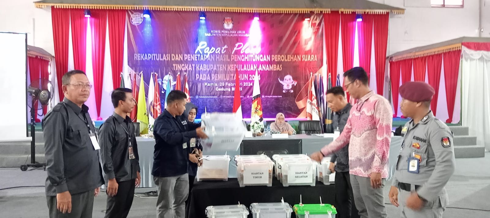 Anambas, KepriDays.co.id – Komisi Pemilihan Umum (KPU) Kabupaten Kepulauan Anambas telah selesai melangsungkan Rapat pleno rekapitulasi hasil penghitungan perolehan suara tingkat kabupaten dalam Pemilu 2024, Kamis (29/2/2024) kemarin di Gedung BPMS Tarempa Barat.