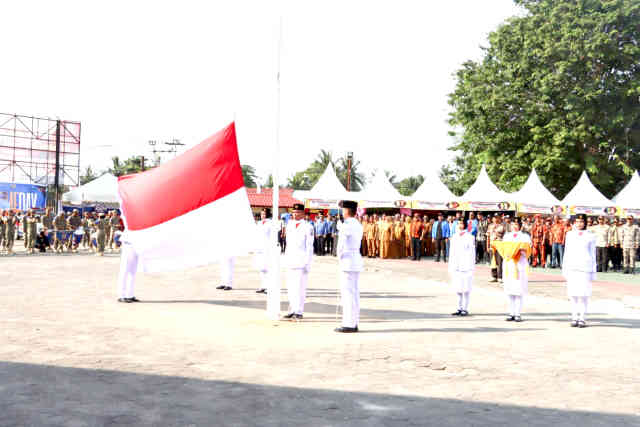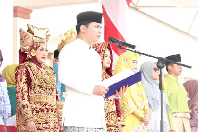Plt Bupati Bintan Ahdi Muqsith yang bertindak sebagai Inspektur Upacara membacakan amanat Menteri Pemuda dan Olahraga (Menpora) RI terkait Sumpah Pemuda tahun ini.