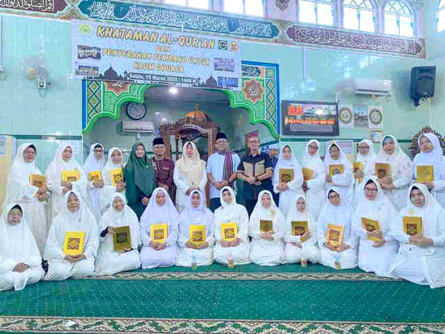 “Semoga ibu-ibu selalu dilimpahkan kesehatan dan berkah dari Allah SWT,” ujar Lis dalam acara Khataman Al-Qur’an yang dirangkaikan dengan pemberian sembako bagi kaum dhuafa oleh Bundo Kanduang Kota Tanjungpinang dan BKMT Permata Tanjung Ayun Sakti di Masjid Babussalam, Jalan Pramuka Lorong Tanama, Sabtu (15/3/2025).