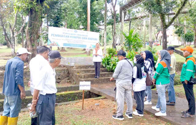 Sementara pada sesi praktik pembuatan lubang resapan biopori, peserta diperkenalkan teknik sederhana untuk meningkatkan daya serap air tanah. Biopori berfungsi mengurangi risiko banjir, membantu konservasi air tanah, sekaligus dapat diisi sampah organik yang akan terurai secara alami menjadi kompos di dalam tanah.