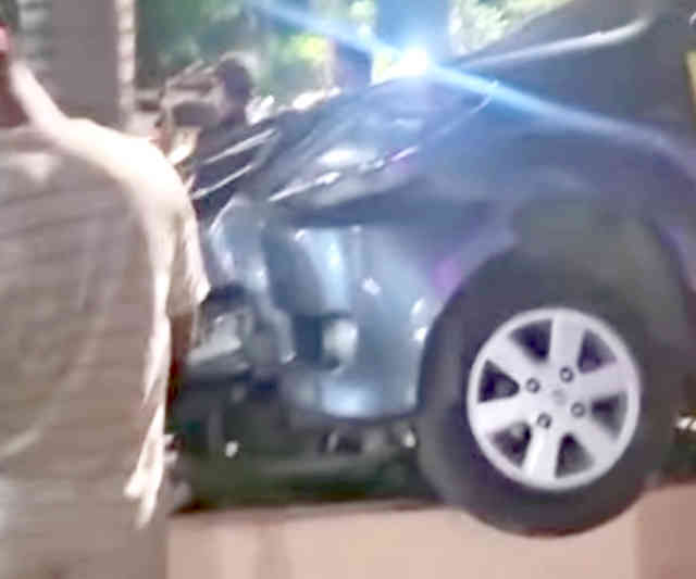 Laka Lantas Mobil Avanza Nyangkut Tepat di Tulisan Tugu Proklamasi Tanjungpinang