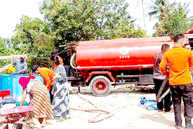 “Dalam kondisi kekeringan ini, kami sudah hampir tiga minggu secara rutin melakukan pendistribusian air ke rumah-rumah warga,” tuturnya.