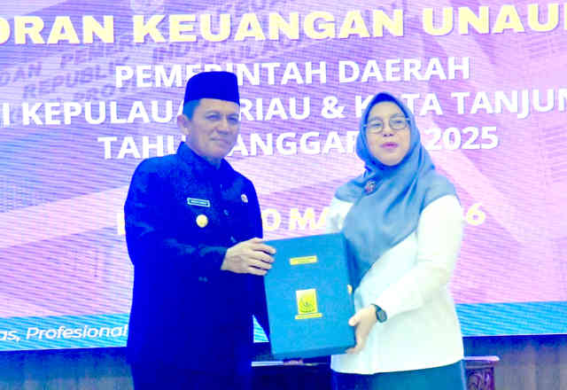 Penyerahan penyampaian Laporan Keuangan Unaudited Tahun Anggaran 2025 Pemerintah Provinsi Kepri dilakukan langsung oleh Gubernur Kepulauan Riau Ansar Ahamad dan diterima Kepala BPK Perwakilan Kepri Emmy Mutiarini.