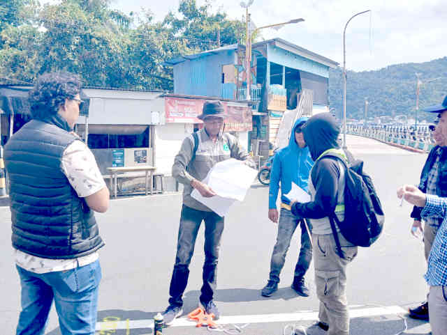 Pemeriksaan di lokasi diawali dengan pengukuran panjang jembatan yang disebut mencapai sekitar 1.225 meter.